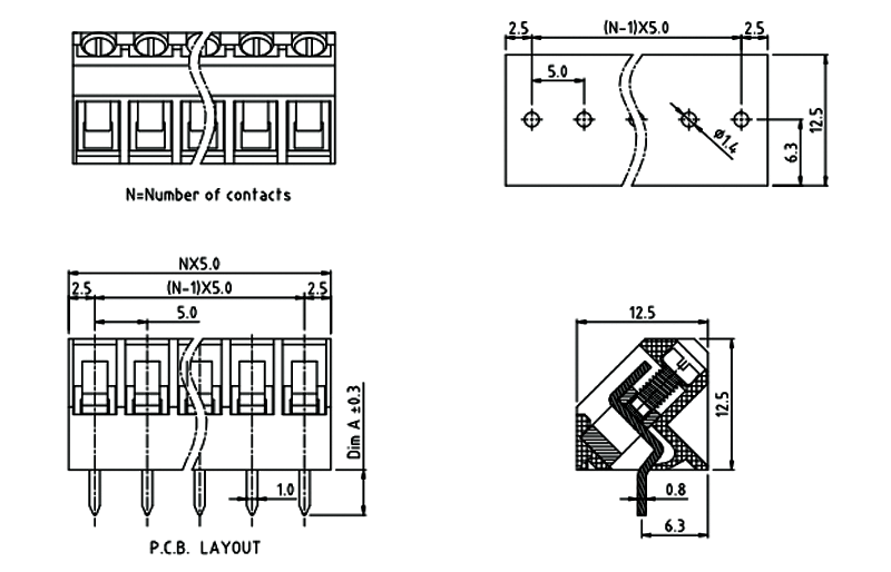 PCB接線端子彈片式