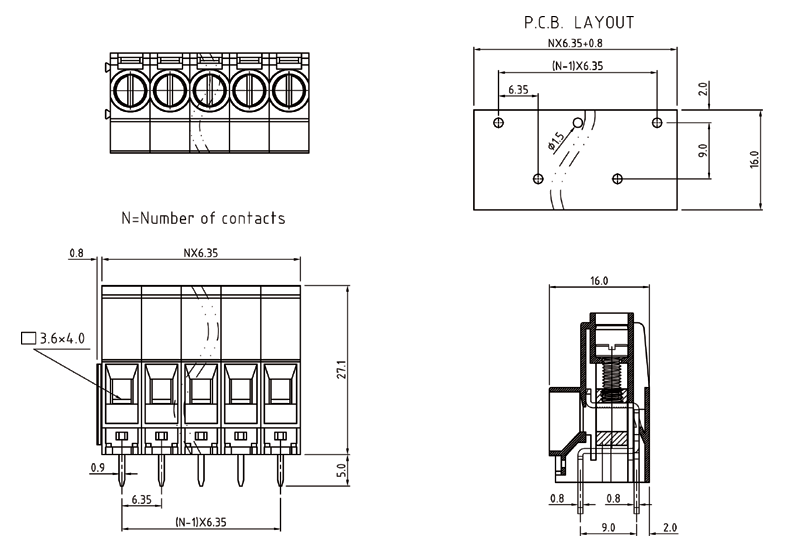 PCB接線端子彈片式